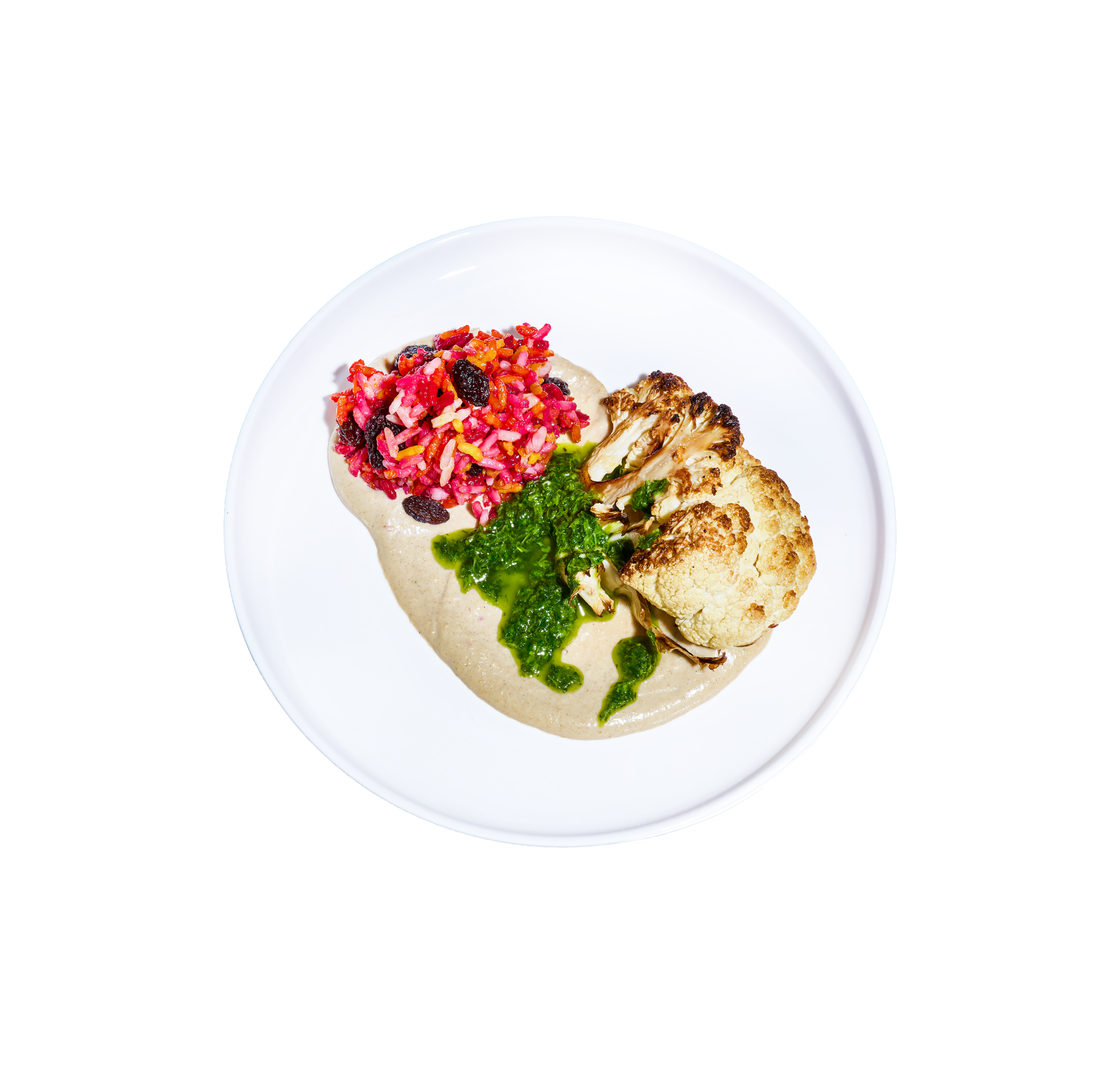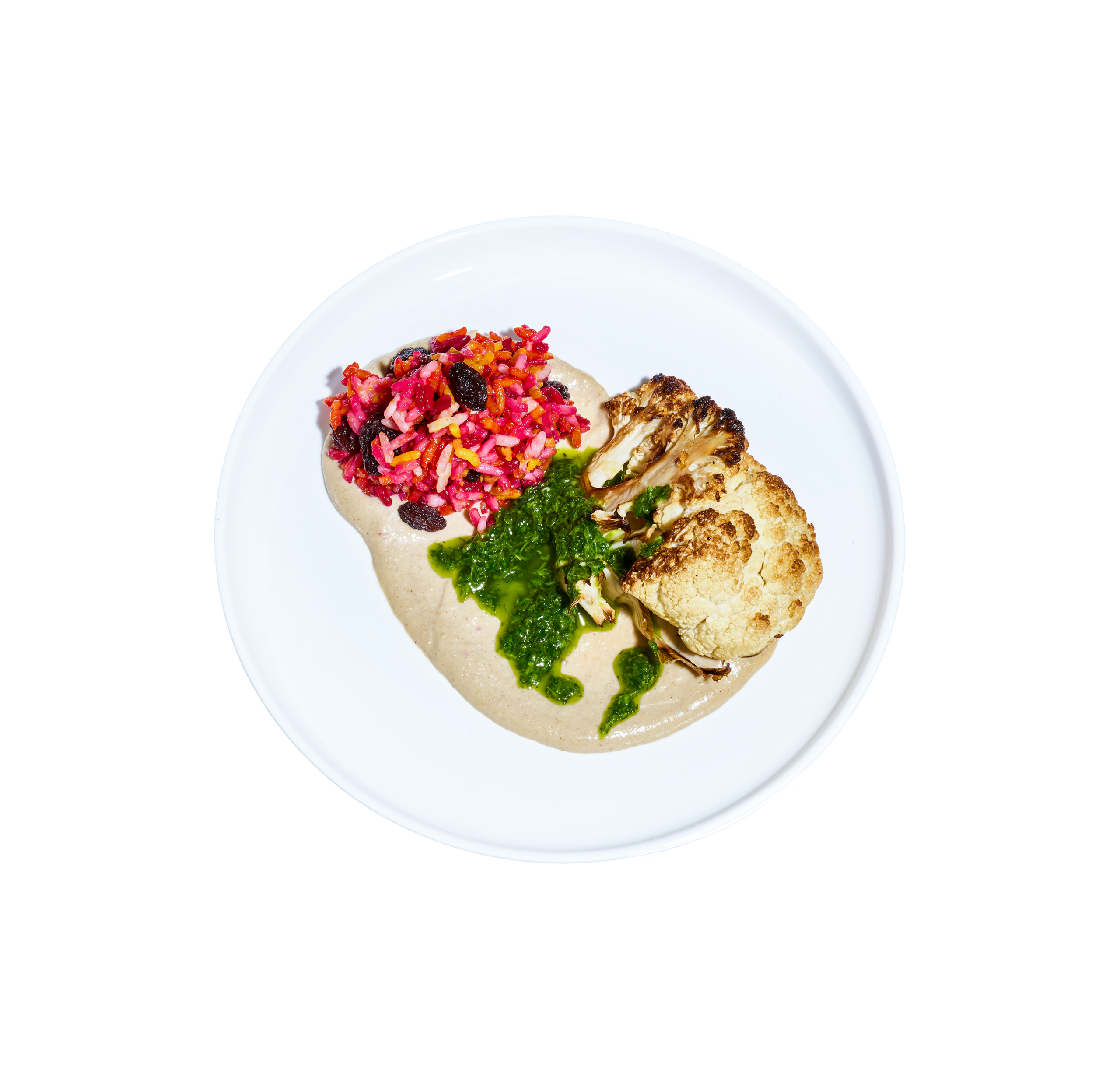 Den Blumenkohl vierteln, ölen und salzen. Im Ofen bei 230 °C trockener Hitze für 15 bis 20 Minuten rösten. Während der Blumenkohl im Ofen ist, die Ofentür einen kleinen Spalt breit geöffnet lassen (z.B. durch das Einklemmen eines Löffels). So kann die Feuchtigkeit entweichen und der Blumenkohl bekommt Farbe.