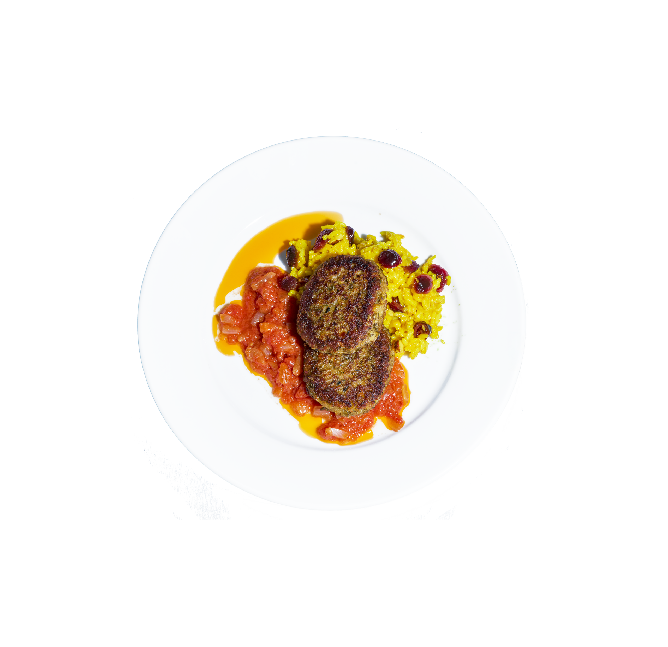 Die Zwiebel-Zucchini-Masse mit den Mungbohnen mischen und mit einem Stabmixer oder Fleischwolf zu einer pasten-artigen Masse verarbeiten. Die Speisestärke einarbeiten und über Nacht im Kühlschrank lagern. Am nächsten Tag die Masse zu 150-Gramm-Portionen formen und bei mittlerer Hitze in Öl für 5 Minuten pro Seite ausbraten.